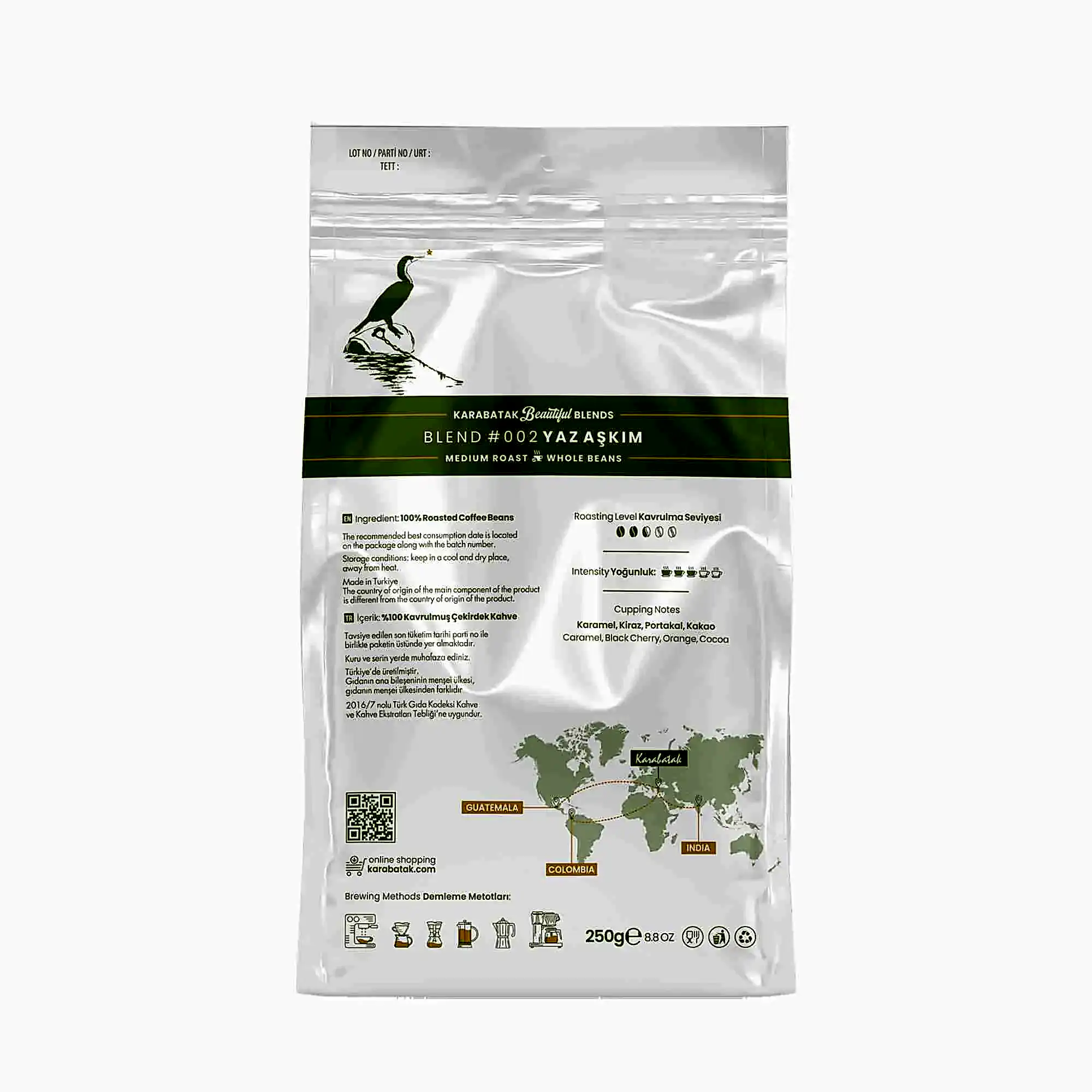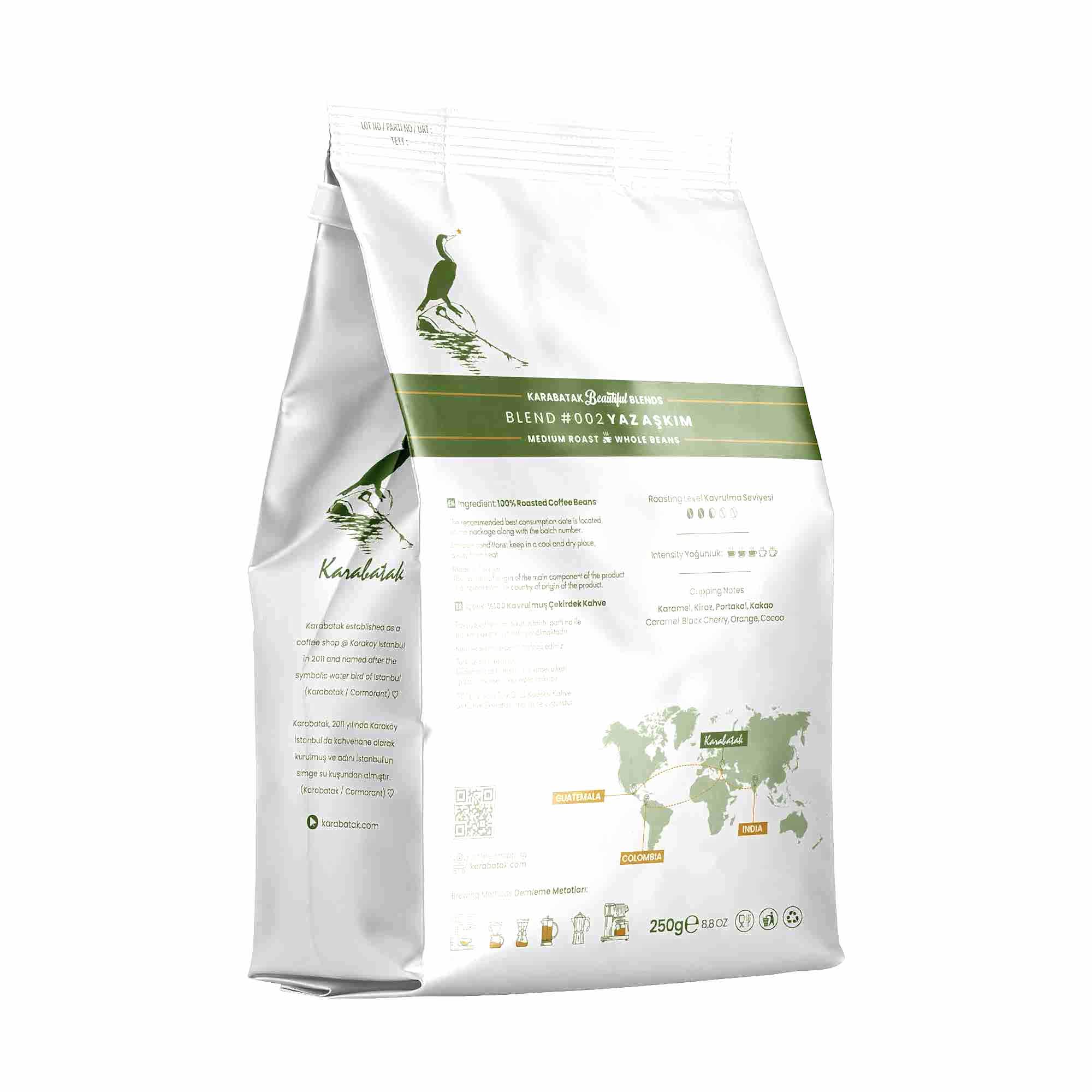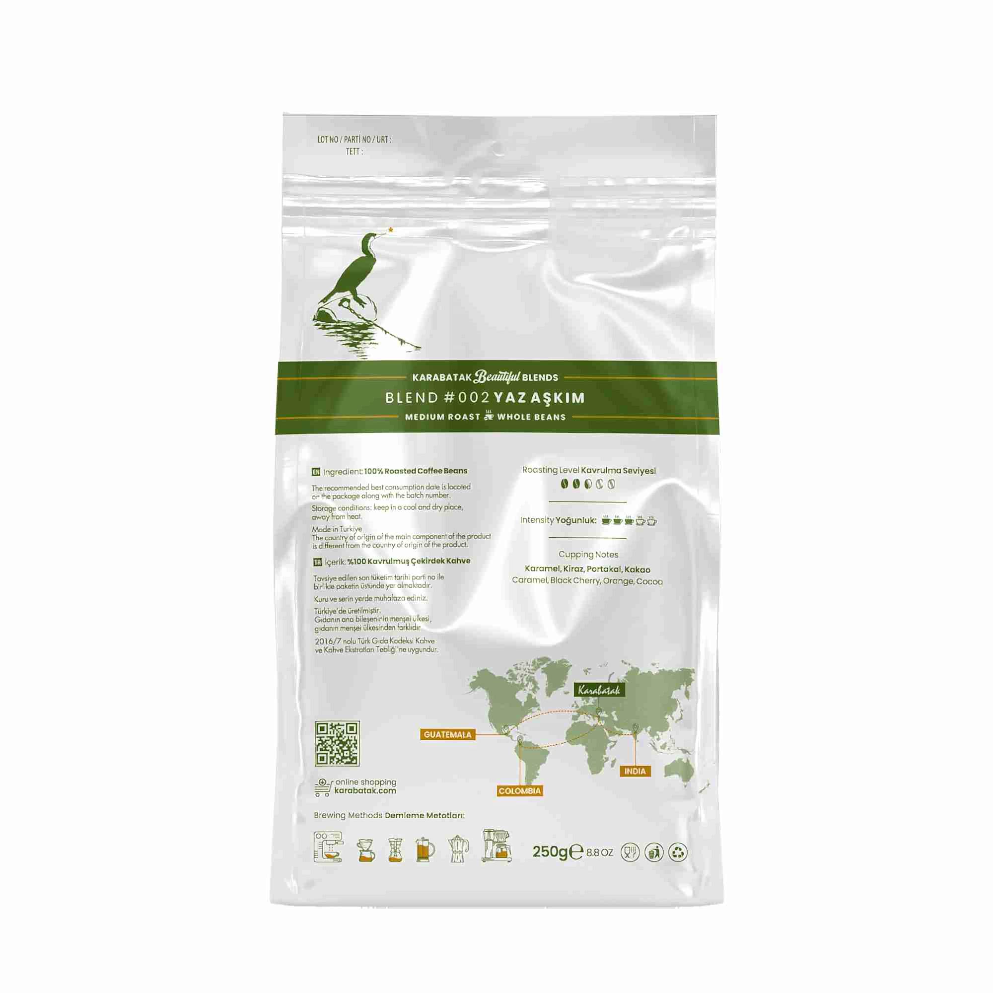 Ana Sayfa Karabatak Kahveleri BLEND #002 YAZ AŞKIM ÇEKİRDEK KAHVE 250 GR